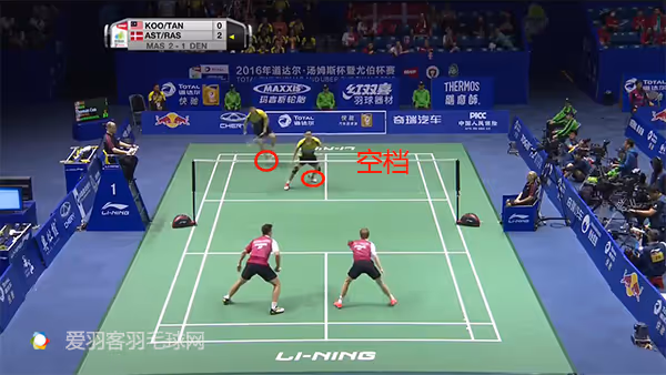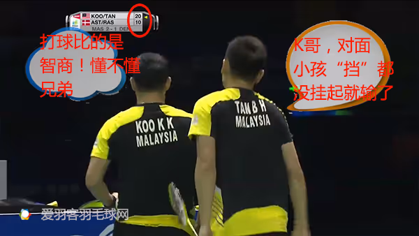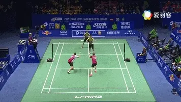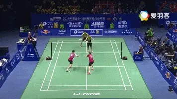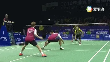 此球通过陈文宏前场推压觅得后场杀球机会,已经发福的KKK连跳带杀,连攻六板斧。此球可以看出老将也会拼命,进攻气势完全压倒了丹麦组合。说起来很简单,想阻止对方杀球的方法就是让自己先杀球,在进攻中让对手无法进攻。