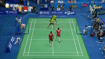 此球蔡队的发接发被亨德拉压制,造成傅海峰的被动起球。蔡队机警的利用傅海峰起球的短暂时机调整站位,从前后站位变成左右站位。形成了另一种形式的轮转,有效地分担了傅海峰的防守压力。