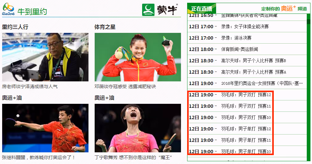昨日很多用户都在问如何收看直播,小编现在就放大招——如何同时收看三片羽毛球场地的视频直播,让亲们能尽情享受奥运的快乐!