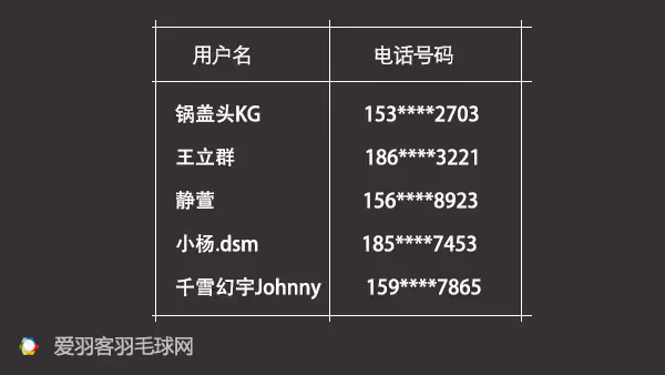 中奖用户:以下5位用户将分别获得爱羽客羽毛球网提供的专属球衣1件