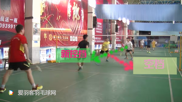 此球黑衣网前出对角球打向空档,黄衣和白衣在补位的分配上,黄衣选择补位空档,白衣则开始往黄衣的身后跑位,形成一个有趣的反跑线路。而对手的后续回球打向了黄衣跑开后形成的新的空档位置。