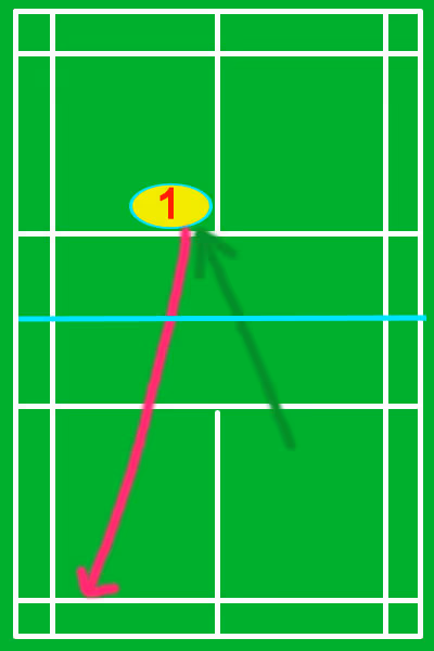 (蓝衣接发抢放近角;注意在对手出球后才“抢”)