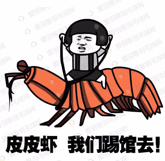 不知道大家发现没,最近连微博和朋友圈已经被“皮皮虾表情包”刷屏了,莫名其妙就火了!爱羽客的程序猿们聊天都是皮皮虾,老编怎能不与时俱进呢?附上新鲜出炉的“皮皮虾,我们走”羽毛球版表情包。