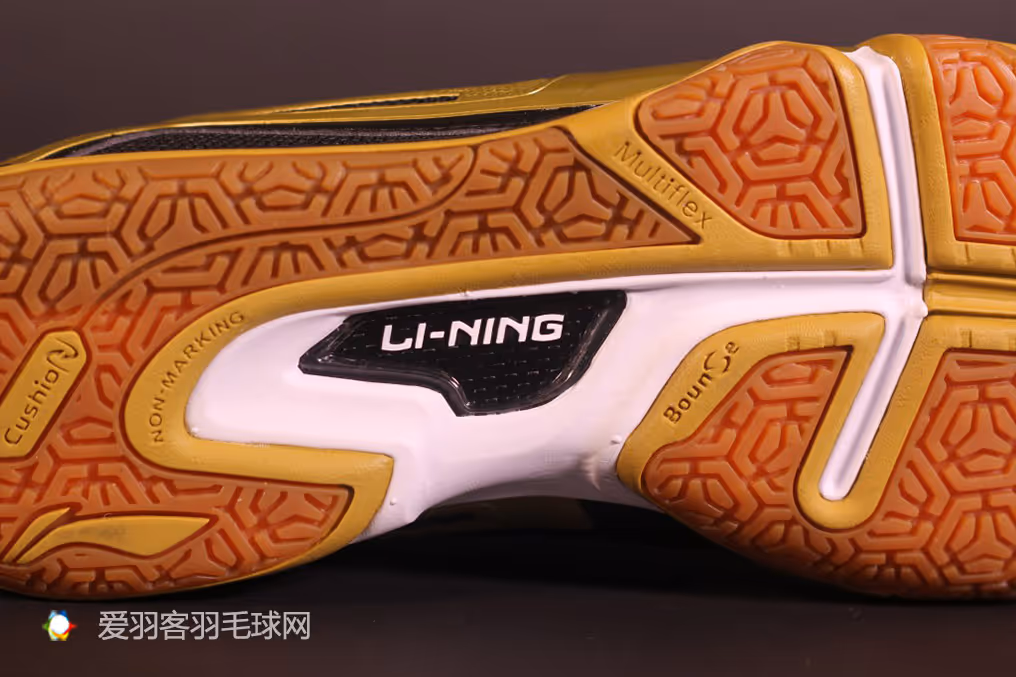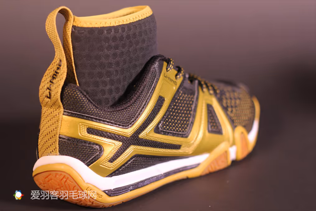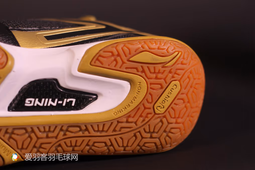 同样的,在鞋跟处的突出也是设计师专门为羽毛球运动而做的改动,在上网步伐中,这样具有摩擦力的后跟能够帮助选手及时的收回跨步,否则就容易出现尴尬的“一字马”。