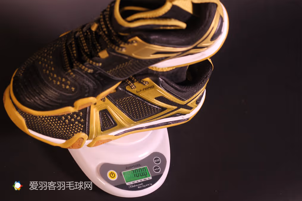 李宁球鞋向来做工用料扎实,AYAM007主打稳定快速,鞋身重量中规中矩,我手上的这双上称重量为700克,平均单只重量350克上脚后没有负担,但还没有达到让人感觉“没穿鞋”一般的轻盈。