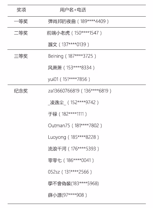 5.每位用户仅有一次中奖机会,若一位用户中奖2次及以上,则顺延至下一名用户;
