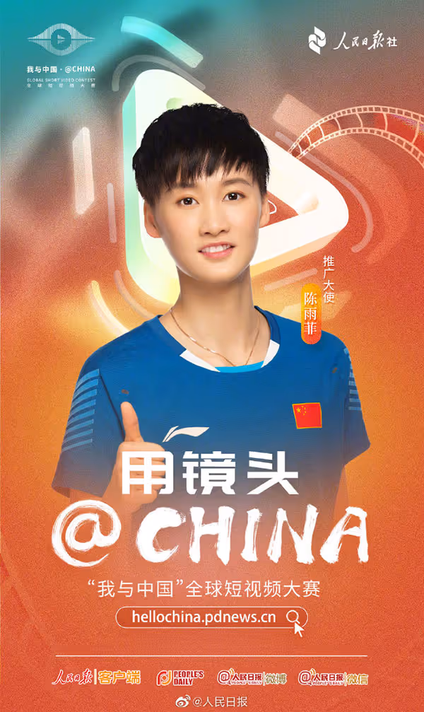 6月下旬,陈雨菲受邀参与“我与中国”全球短视频大赛的推广大使,同框的还有王凯、李宇春和佟丽娅等明星大咖。