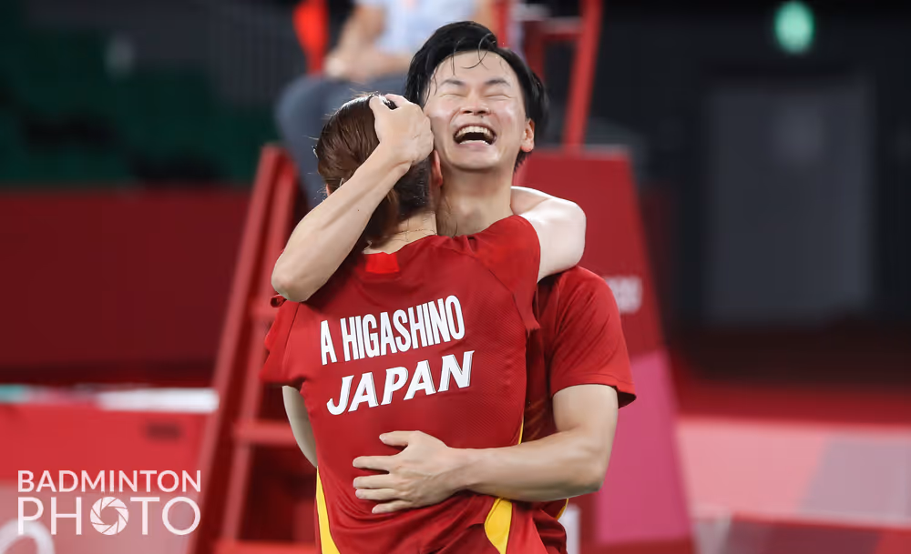 渡边勇大/东野有纱在今天的奥运羽毛球混双铜牌赛上,2-0战胜中国香港组合邓俊文/谢影雪,拿到了一枚宝贵的铜牌,这是日本羽毛球奥运历史上第一次有男选手夺得奖牌。