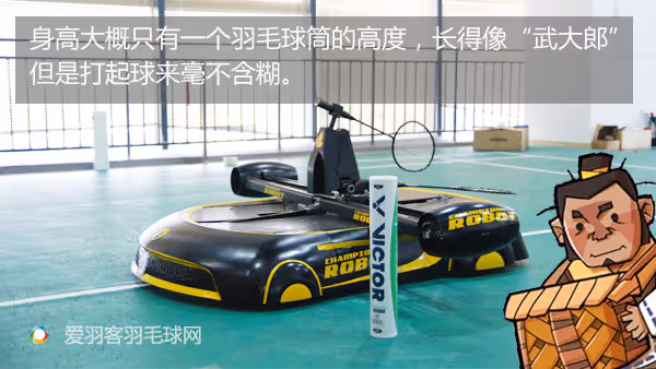 这位“网红”其貌不扬,身高大概只有一个羽毛球筒的高度。别看它长得像“武大郎”,不像《机器人总动员》中的伊娃那样萌萌哒,但是打起球来毫不含糊。