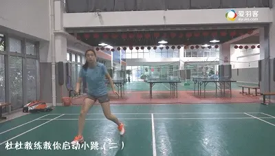 (2)缠斗网前,连续启动急调整。对方主动打网前,要快速启动,抢高点去处理球。如果预判到接下来有可能是连续的网前缠斗,脚上就必须连续启动,脚跟不黏地。注意不要贴网太近,尤其是两侧网前球处理完后,必须要有一个快速向斜后方回跳半步的动作,一方面可以作为下一个球的启动步,一方面也为下一拍击球留出足够的空间;