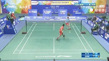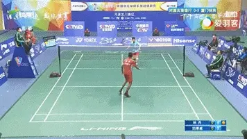 (林丹标志性的倒地接杀,注意接杀前明显的降低重心)