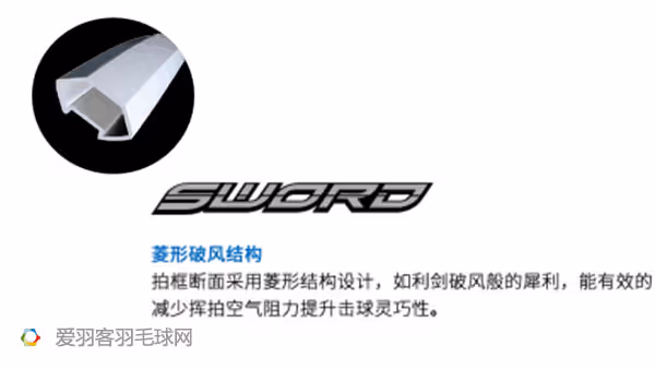 胜利经典球拍亮剑系列,就以以菱型破风框体为主要卖点,尤其以亮剑12为代表。拍框采用菱形破风结构设计,减少挥拍时的空气阻力如利剑破风般犀利。