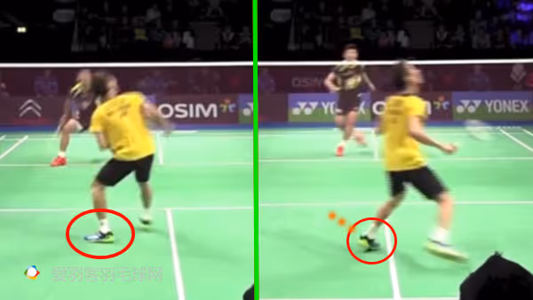 前面爱羽客菜师兄强调了伟哥通过“跳步”来节省步数的做法;在退更长的对角球路时,伟哥后退的第二个精髓在于利用向后转身的惯性,左脚顺势垫一小步。在不浪费时间和步频的前提下,有效的争取了更长的移动距离。