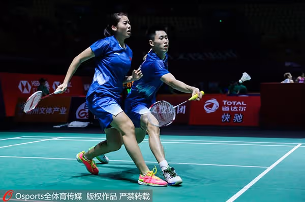 陈笑菲/周超敏(中国)2-0(21-17、 21-16)郭浴雯/Lin Wan Ching(中国台北)