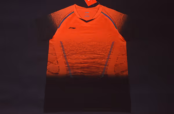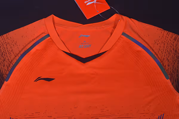 有别于世锦赛纯红纯黑的“单调”配色,这次,我们收到了一款型号为李宁 AAYP317-2的“花哨”球服:橘红色+标准黑和标准白+晶蓝色。较之前两款,这两件大赛服在颜值上明显要略胜一筹。