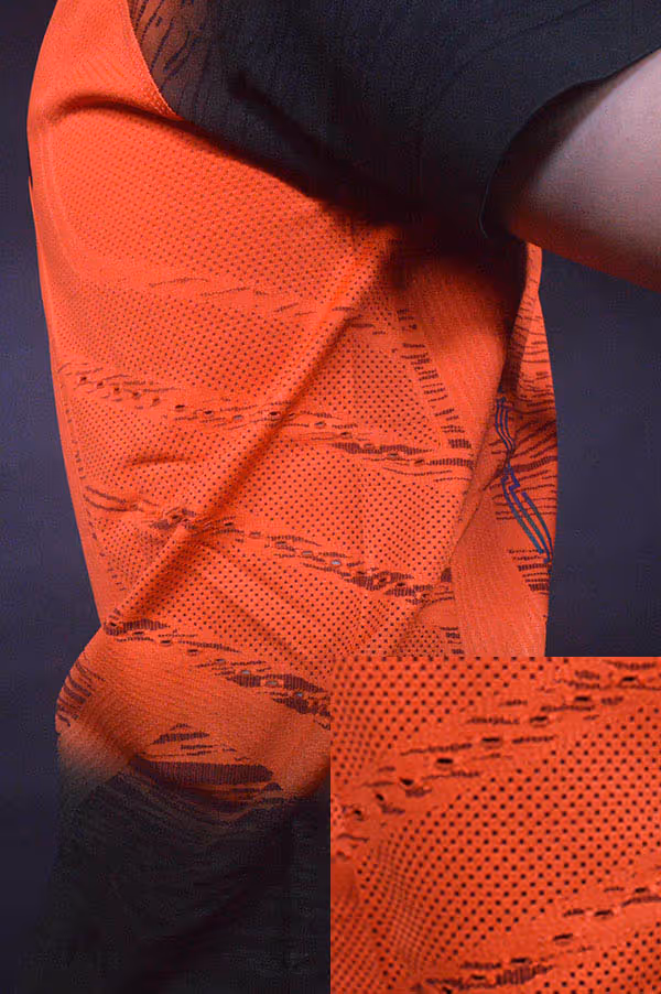 总体来说这套球服在设计和材质上都很用心,尤其在排汗透气方面,设计师可谓是狠下功夫,除了在前胸、后背以及腋下等出汗较多区域设有透气孔外,还在球服两侧增加了很多排气孔。