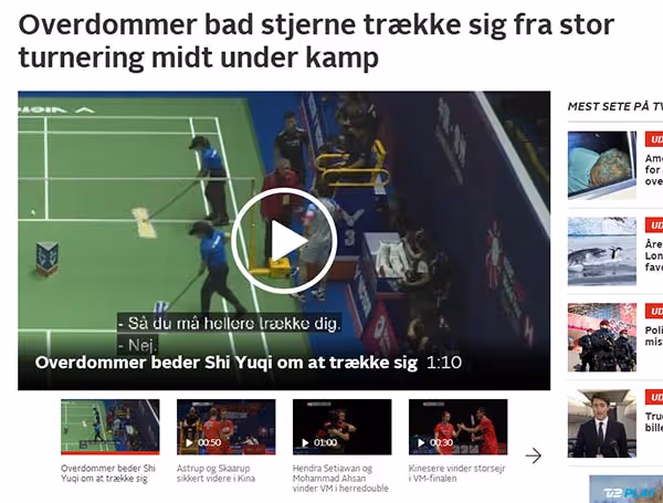 2019年9月18日 石宇奇带伤上场输球,被丹媒批“违反体育道德”