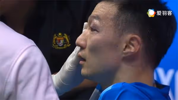 维德佳佳不小心被陈炳顺的杀球打到眼睛