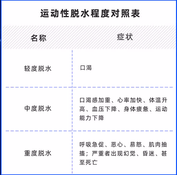 如果不及时补充水分,很容易造成「运动性脱水」。可别以为脱水是小事,严重的话,会出现幻觉、昏迷,甚至死亡……