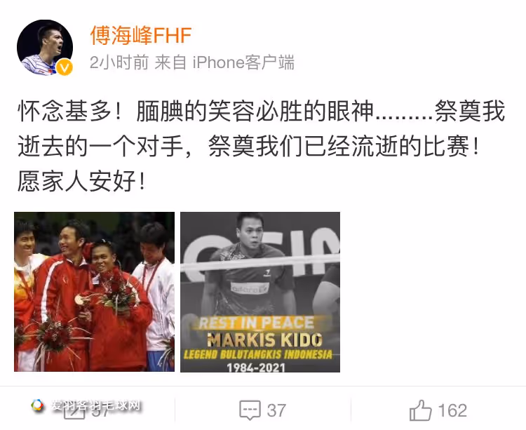 昨天,2008年北京奥运羽毛球男双冠军基多在打羽毛球时突发心脏病去世,羽坛众球星发文悼念。
