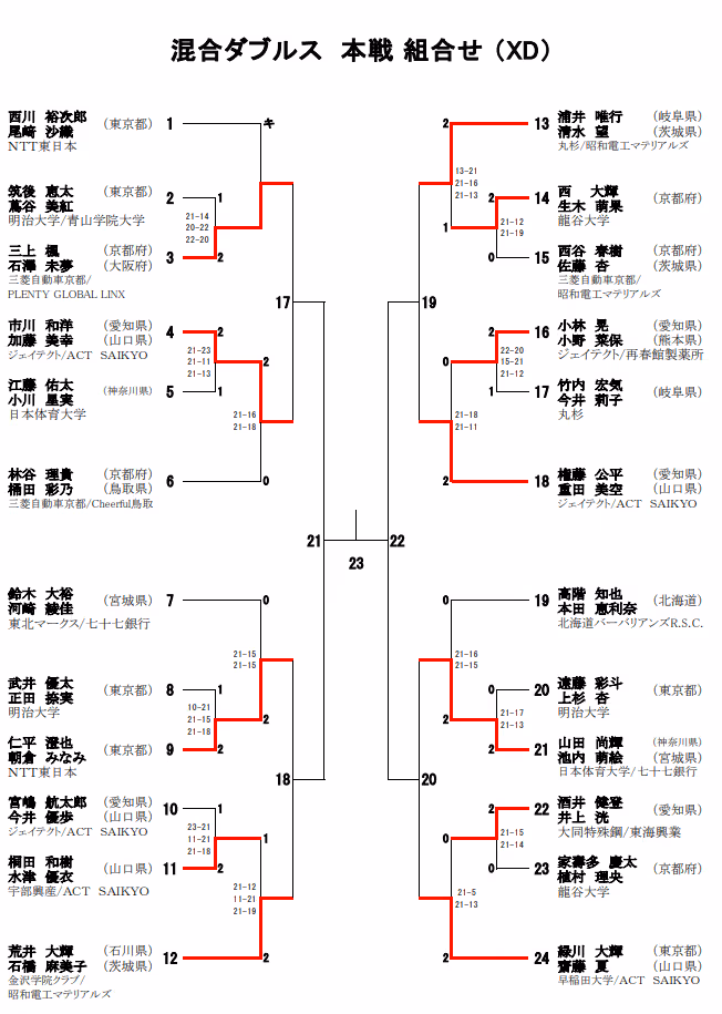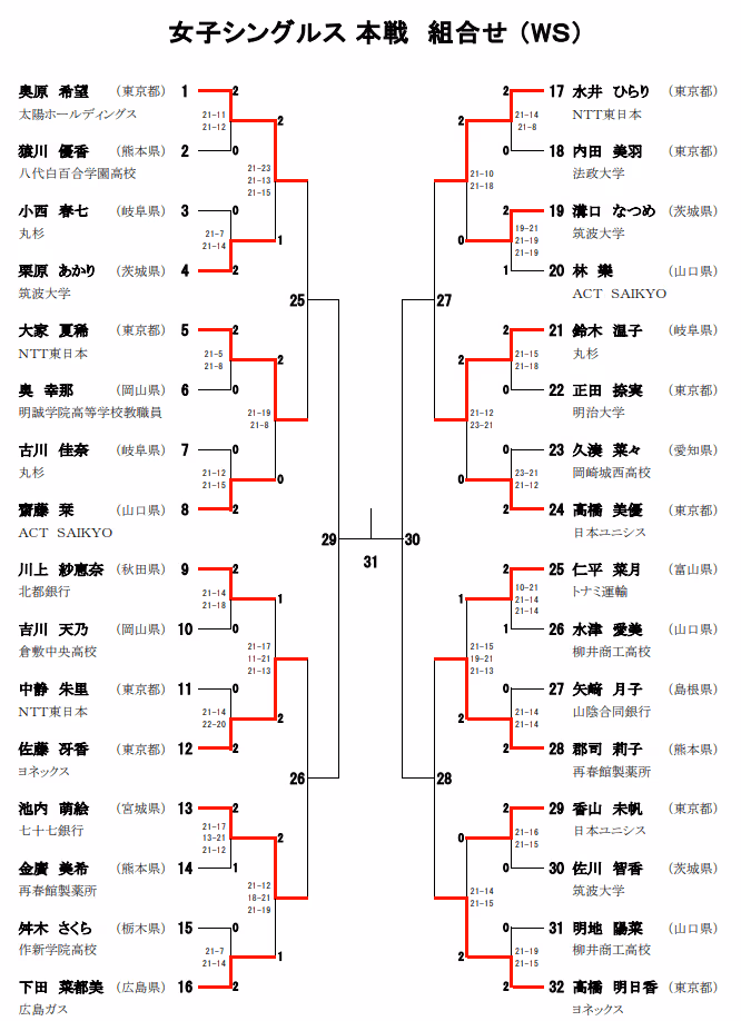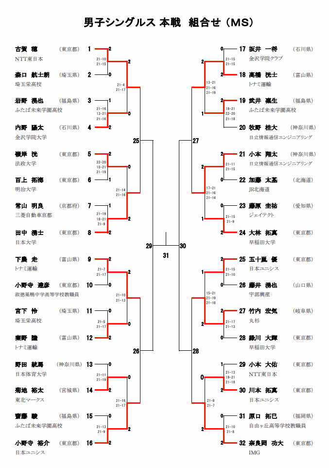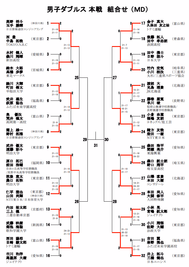 2021年全日本锦标赛1/8赛果