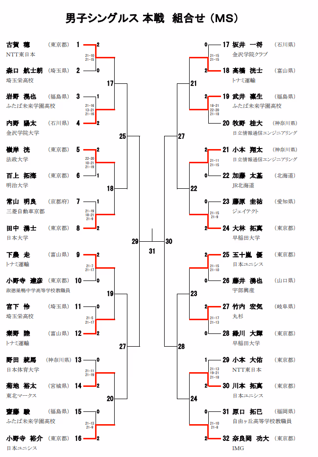2021年12月26日,全日本综合锦标赛各项赛事首轮比赛于日本武藏野森林体育广场进行。奥原希望自东京奥运会后首次亮相,耗时41分钟战胜猿川由香,晋级16强!桃田贤斗和此前参加世锦赛的选手皆缺席此项赛事,桃田贤斗应是背伤未愈,参加世锦赛的选手则应该是在进行隔离!