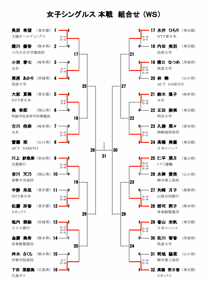赛后,旨在三连冠的奥原希望表示:“我很高兴能够与初级选手交手。接受了年轻人的挑战。”