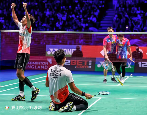 虽然阿山受伤让决赛的精彩程度大打折扣,但这对印尼第五男双组合表现出了超一流的能力,半决赛对阵小黄人组合,中前半场死磕苏卡穆约火花四溅不落下风,后场进攻暴力异常,倒地鱼跃防守更是拼命,最终爆冷击败了两大师兄组合,拿到了职业生涯首枚全英金牌。
