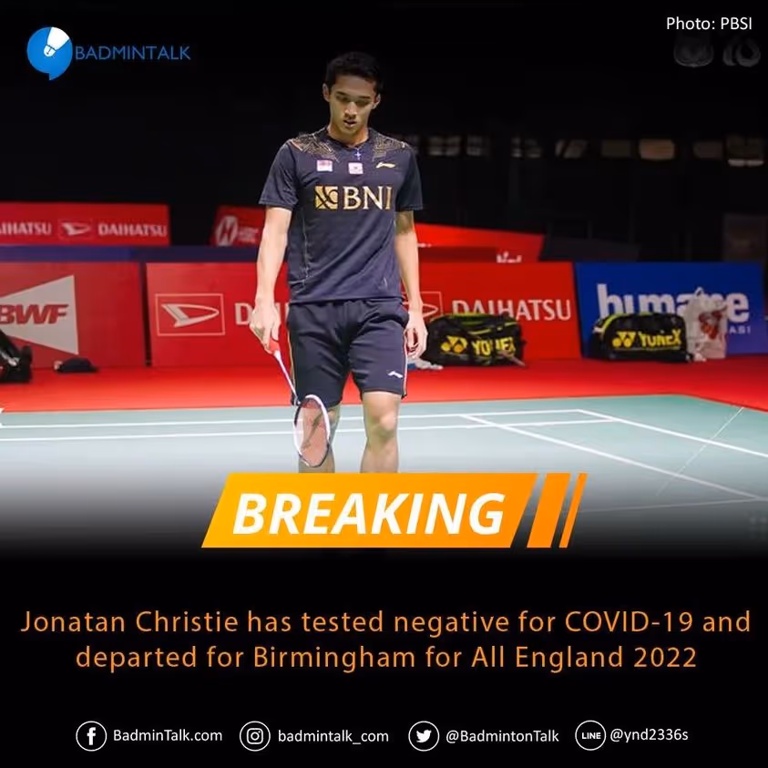 2022年3月14日,印尼双子星乔纳坦的新冠检测转为阴性,已前往伯明翰参加 2022 年全英赛。