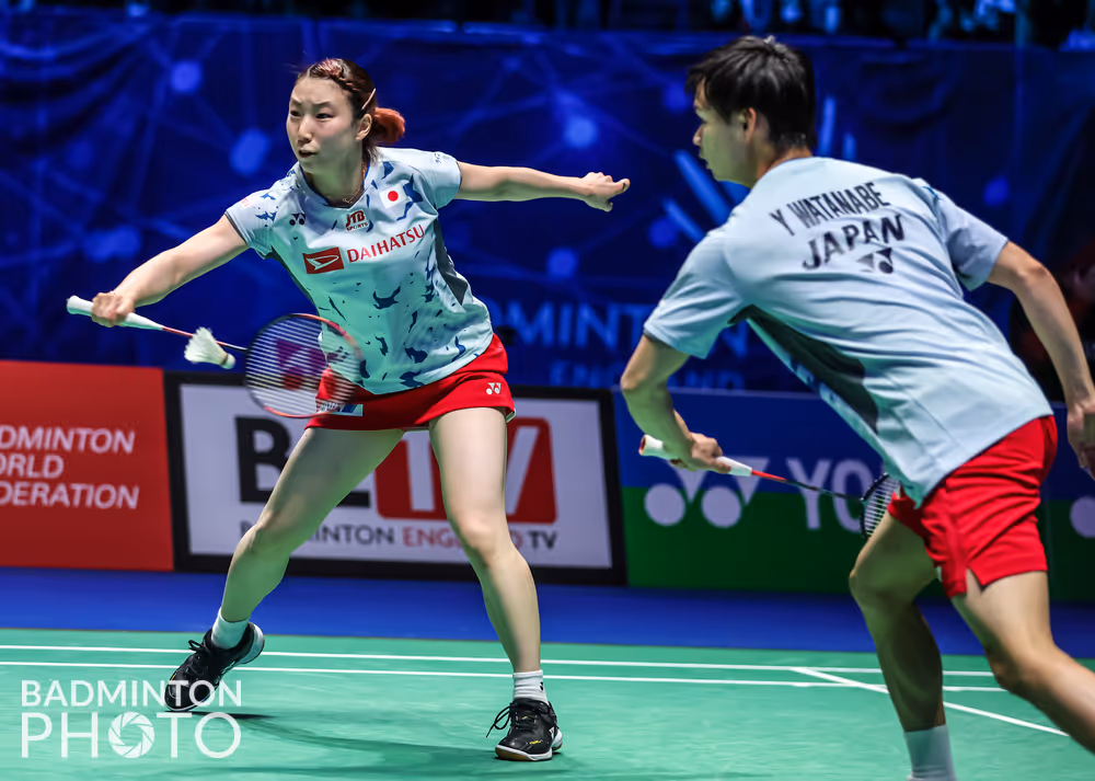 卫冕冠军渡边勇大/东野有纱终结世界冠军的德查波尔/沙西丽的33场连胜纪录,两局粉碎对手的7连冠美梦,第4次携手打入全英赛决赛。