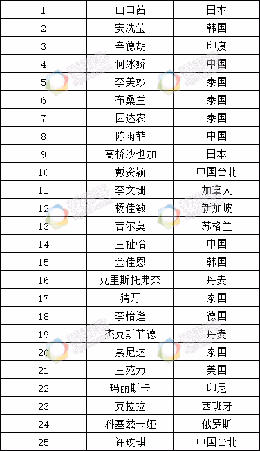 女单方面,陈雨菲跌至第8,国羽女单何冰娇成为排名最高第4。世界第一的宝座仍然是山口茜坐着,其次是安洗莹,第三是辛德胡。