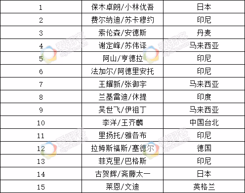 男双解冻之前只有何济霆/谭强排名在前25名之内,第18位;而且两人已经拆对,解冻之后排名更加堪忧。反观印尼世界排名前15中就有5对组合,占了三分之一,国羽男双还需加油呀。