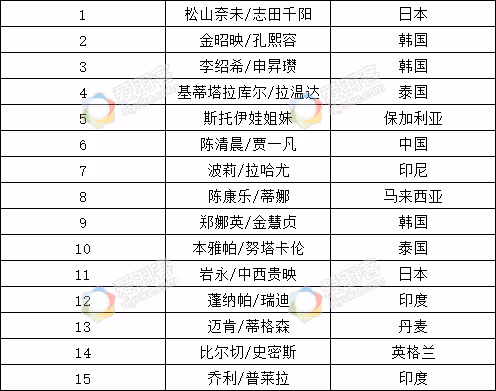 国羽女双陈清晨/贾一凡跌落凡尘至第6位,日本组合松山奈未/志田千阳一举跃至世界第一。韩国两对组合排名第二、第三,目前世界羽坛女双格局是中日韩“三强争霸”,国羽女双还需要加强梯队建设,需要更多人成长起来。