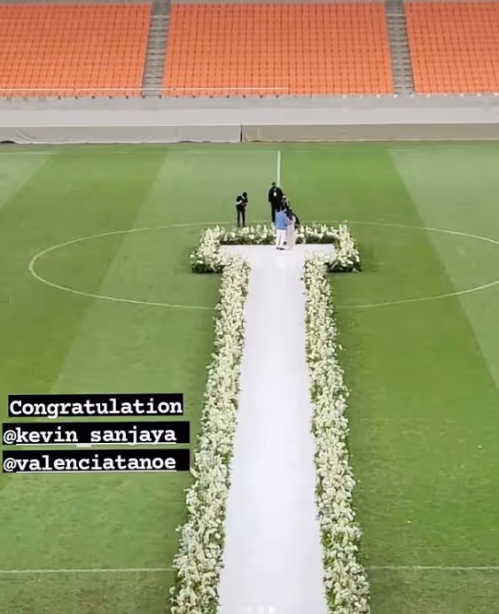 在亨德拉的 Instagram 中,展示了一张雅加达国际体育场场地的照片,上面有一条白色的车道,上面装饰着白色的花朵。亨德拉还通过嵌入苏卡穆约和 瓦伦西亚的 Instagram 帐户写了祝贺。