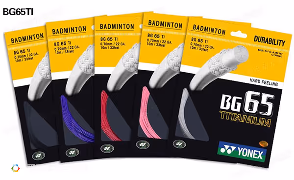 BG65线可以说是广大球友用得最广泛的一款拍线,不过击球感偏软。BG65TI在BG65的基础上,在纤维表面采用高密度的氢化钛涂层,弹性优良、耐磨性极佳、击球感硬而有力,能够增强杀球威力和降低震动。氢化钛的物理特性是硬和脆,带来的是球线的延展性变差,刚性变强,相比于BG65线,65TI的击球感要更硬一点,但是氢化钛的特性使涂层与球线内部的延展性有所不同,相比BG65出现意外崩断的概率比BG65也要高一点。