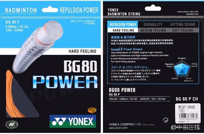 BG80P的打感和80线并不是太像,虽然二者都是进攻型球线,但80P与80线相同的只有线芯而已,80P的线衣使用的是与BG65等球线相同的耐用型线衣,在80的基础上,80P的耐用度要高上不少,而击球感则变得更软,没有了80线击球那么干脆,而是多了一分柔和。值得肯定的是,80P同样是一条好线,尤其在高磅情况下,其进攻性与耐用度得到了一个很好的平衡,适合于绝大多数喜爱进攻和高磅的选手。