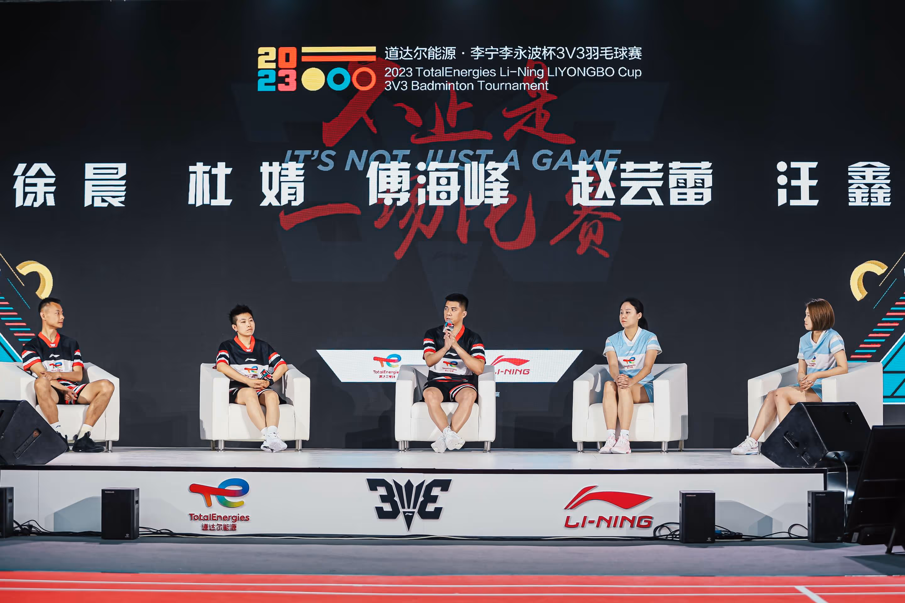 2023年5月26日,在广大羽球爱好者一众期待中,2023道达尔能源·李宁李永波杯3V3羽毛球赛启动发布会在北京李宁中心盛大开幕。李宁(中国)体育用品有限公司领导嘉宾:联席CEO钱炜、CFO赵东升、CHRO宋春涛、羽毛球事业部总经理任茂成、羽毛球事业部市场总监李竹筠,赛事冠名合作伙伴领导嘉宾:道达尔能源(中国)投资有限责任公司总裁安颂岚女士(Ms. Anne-Solange RENOUARD)、道达尔润滑油(中国)有限公司董事总经理帝龙(Mr. Stephane DION)、市场总监余陈鑫(Mr. Ricky Yu),前中国羽毛球队总教练、3V3总冠军奖杯捐赠人李永波指导,以及各路媒体参与了本次启动发布会。值得一提的是,本次发布会不仅公布了2023升级赛制与装备,更是邀请了羽毛球世界冠军傅海峰、杜婧、徐晨、赵芸蕾、汪鑫到场助阵,李宁集团董事长李宁先生也以视频方式对赛事进行了祝福。