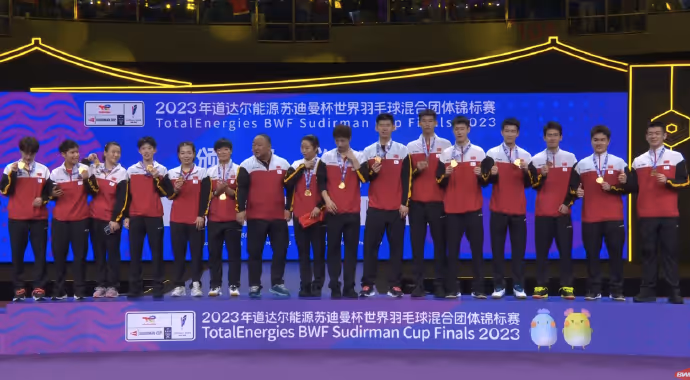 2023年5月21日,经过3个半小时的激烈对决,中国队以3-0战胜韩国队,成功卫冕,在实现三连冠的同时,也创造了在总共18届苏迪曼杯中,第13次捧杯的历史纪录。