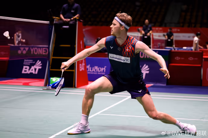 2025泰国羽毛球公开赛半决赛中,安东森18-21、21-13、21-16战胜国羽陆光祖。